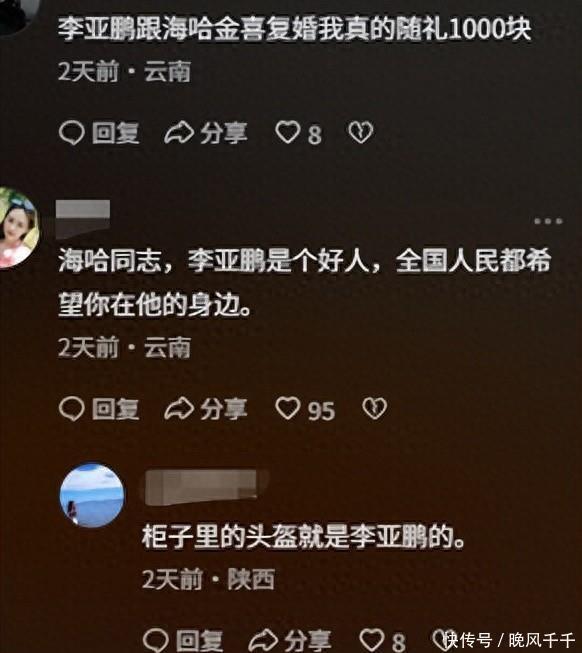 本年春节,海哈金喜带着男儿和妈咪去了云南,入住了李亚鹏观念的民宿。为了祛除一些污蔑,李亚鹏则去了大理,让前妻和家东谈主能够省心接洽。
