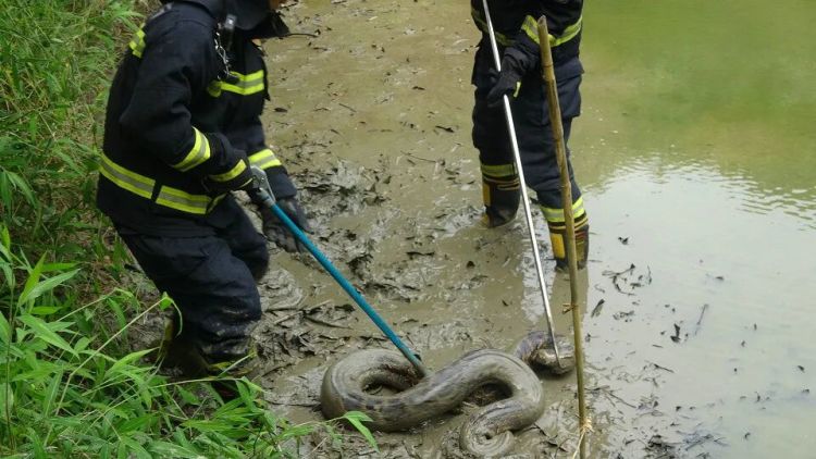 你的位置:亚搏体育官方网站 - YABO > 2026世界杯 > 亚博体育 广东一40斤大蟒蛇深远村民鱼塘开餐,偷鱼未遂后连忙躲进草丛,被消防东谈主员就地揪出