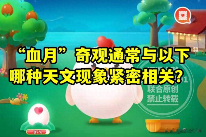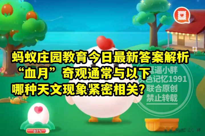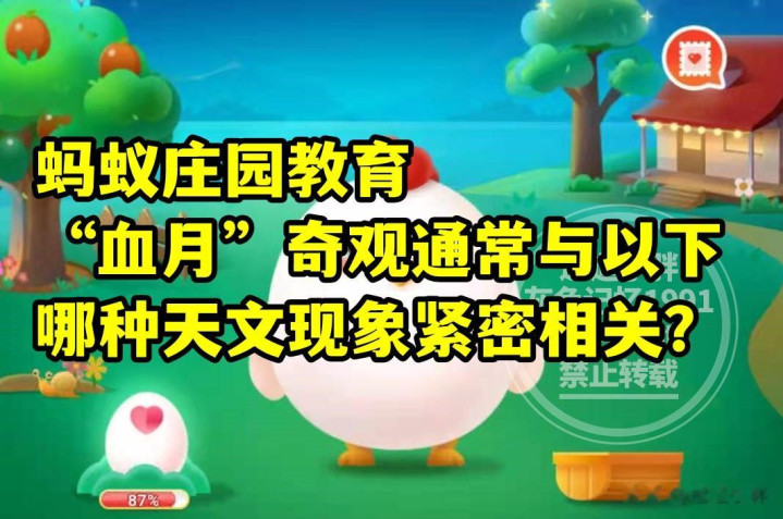 蚂蚁庄园训练:“血月”奇不雅赓续与以下哪种天文表象精良联系?A、月环食 B、月全食;为什么东谈主吃辣的东西会流汗?A、辣椒能升迁体温 B、辣椒素刺激大脑;这些皆是蚂蚁庄园训练的题目。