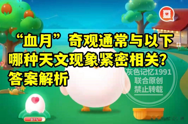 亚搏 “血月”奇不雅赓续与哪种天文表象精良联系? 蚂蚁庄园训练血月谜底