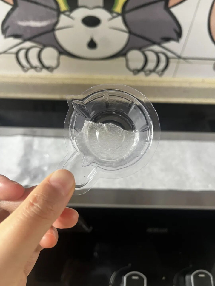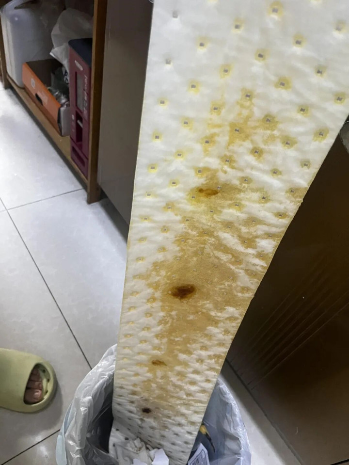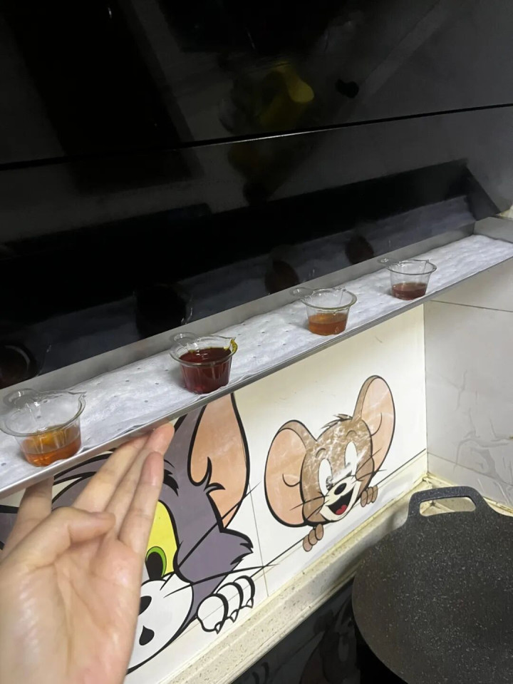 在集油盒里铺一块吸油棉,上头再放几个小塑料杯,油烟机淌下来的废油,全精确落到杯子里,就算杯子满了,底下还有吸油棉兜底,小数都不会漏出来。