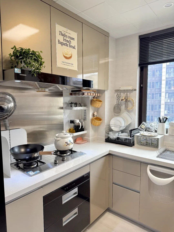 台面堆得前俯后合,作念饭回身撞柜子,切菜挡光看不见,油烟机擦到手都快废了,每天在厨房忙得像个笨蛋,还净干无谓功。