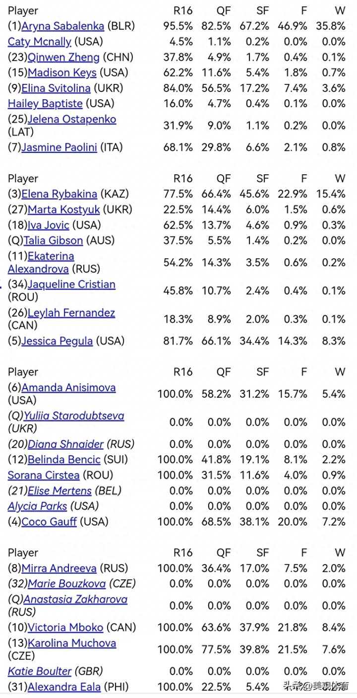 亚博app 最新更新: WTA1000迈阿密夺冠概率排序, 郑钦文第32