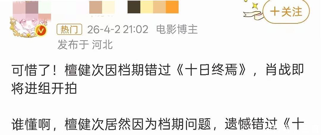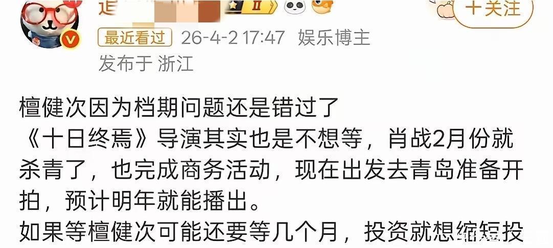 他们发的本体中枢就一句:“檀健次错过《旬日终焉》”。