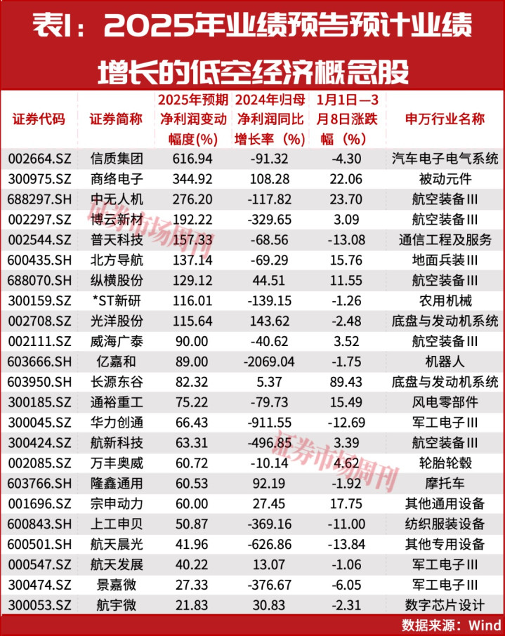 2025年功绩预报瞻望功绩增长的低空经济想法股。图源:证券市集周刊
