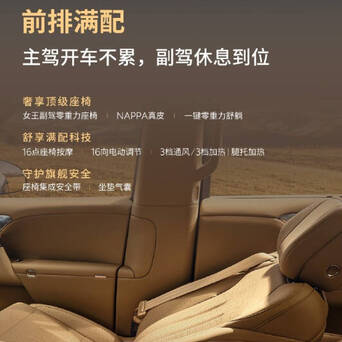 副驾一键零重力+16点推拿+16向电动诊疗+透风加热腿托+Nappa真皮,座椅集成安全带和坐垫气囊。